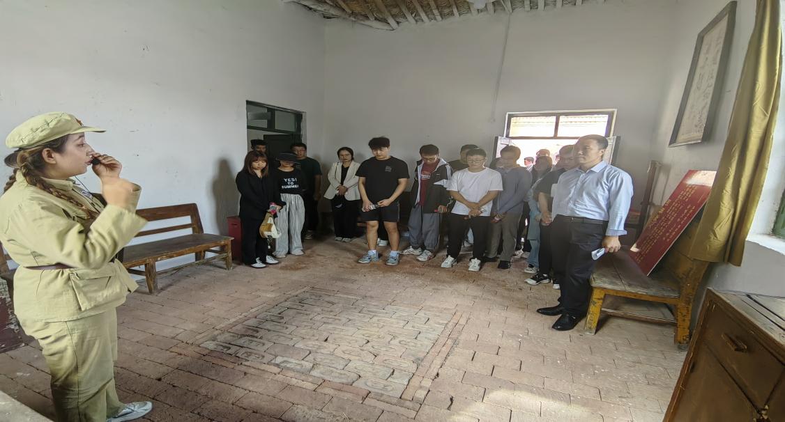 支部师生党员、结亲学生一起参观了兵团创业初期军垦战士们集体生活的大礼堂、地窝子、干打垒伙房、 蓄水涝坝等军垦遗迹;深入了解并体验了老一辈革命军人建设边疆时曾使用过的木轮牛车、木犁、石磨等垦荒和生活用具。通过讲解员的讲述,大家一同走进了那段激情燃烧的岁月,沉浸式地感受了兵团军垦战士在戈壁滩上开良田、建新城,将青春热血洒在天山南北的亘古荒原所形成的“热爱祖国、无私奉献、艰苦创业、开拓进取”的兵团精神。