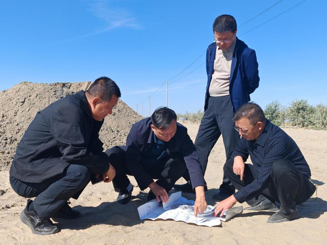 走访调研期间,王振华一行在岳普湖县委领导的陪同下深入岳普湖县沙漠腹地、田间地头和水利工程施工现场,在充分调研该县防沙治沙、水资源利用等情况的同时及时提供专业咨询和技术支持。