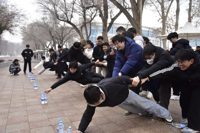 依托军垦建筑遗产,研学设计团队还设计了“红色寻宝”、“你比我猜”、“群龙取水”等趣味游戏和知识问答活动。现场气氛热烈,同学们热情高涨,踊跃互动,在轻松愉快的氛围中进一步加深了对军垦建筑遗产的理解,同时也更深刻地感悟了兵团精神的丰富内涵。
