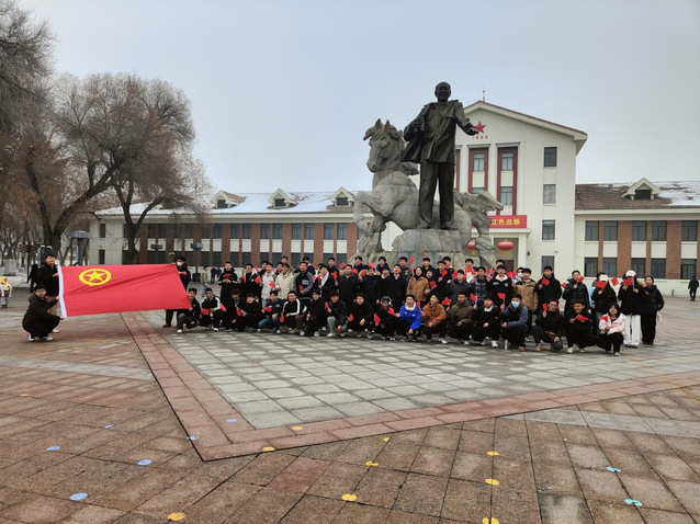 研学启动仪式上,全体同学齐聚军垦广场,在王震将军塑像前手持红旗,满怀激情地高喊:“军垦建筑遗产研学,我们来了!”。张壮壮在致辞中勉励同学们要珍惜此次研学机会,用心感受军垦建筑文化的深厚底蕴,用情体悟兵团精神的伟大力量。