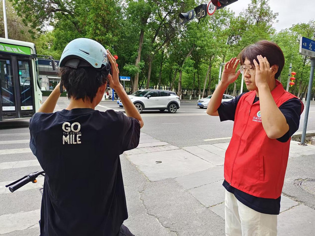 2023级土木工程专业刘研博谈到自己参与实践活动的感悟“今天我以志愿者身份参与文明交通劝导工作,提醒骑行者规范佩戴头盔、过斑马线下车推行,我观察到了明显的变化:从最初的匆忙骑行,到后来多数人的自觉推行,市民的理解与配合让我深刻体会到看似微小的文明劝导,实则传递着安全出行的温度,这份责任感将激励我继续投身综合实践之中”。