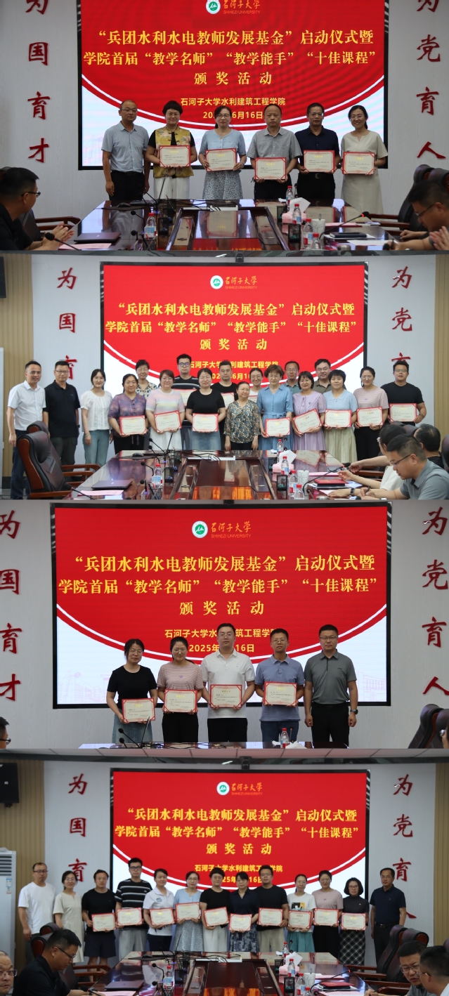 6月16日,番茄小说 “兵团水利水电教师发展基金”启动仪式暨首届“教学名师”“教学能手”“十佳课程”表彰会成功举行。兵团水利水电工程集团有限公司副总经理吴卫东、组织人力资源部副部长丁雅鸿、质量技术中心副主任刘宏峰,学院党委书记袁康、院长李俊峰、副书记娄哲、副院长陈伏龙、副院长金瑾及获奖教师代表出席大会。