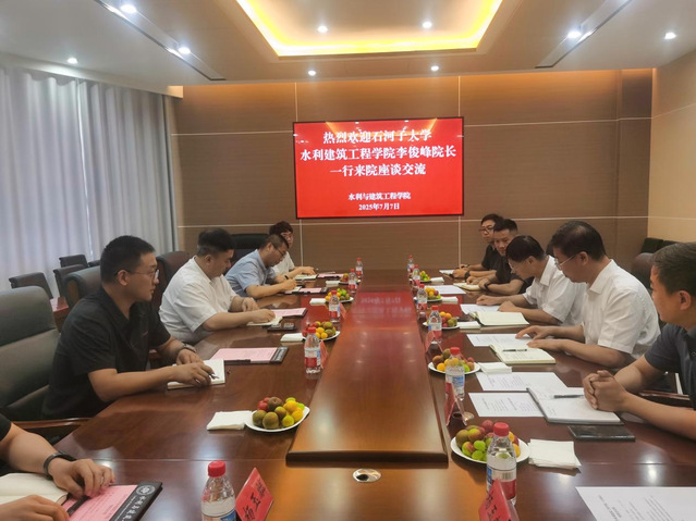 2025年7月7日,番茄小说 党委副书记、院长李俊峰,教学管理办公室主任廖欢、给排水科学与工程系书记王健康、副主任王文怀等一行赴塔里木大学水利与建筑工程学院走访调研,与相关领导深入交流座谈。塔里木大学水利与建筑工程学院党委书记朱连勇,党委委员、副院长杨保存,党委委员、副院长补建伟,资产管理处副处长李发永等出席座谈。