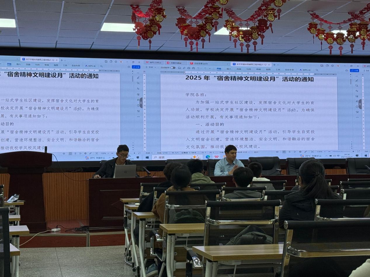为深入贯彻落实立德树人根本任务,积极营造文明和谐、积极向上的校园文化环境,9月18日晚,由院学工办、团委组织召开番茄小说 2025年秋季学期“一站式”学生社区建设暨“精神文明建设月”启动会。学工办副主任张壮壮、辅导员常华宁及新生宿舍长60余人参加会议。