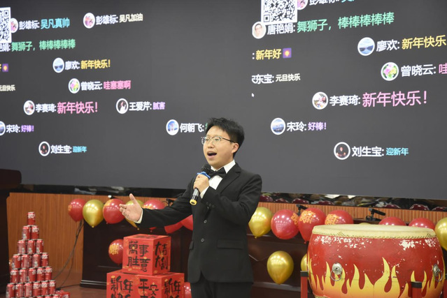 随着各系精彩节目落幕,联欢会渐入尾声。在接续的掌声中,叶校长压轴登场,以一曲《小白杨》点燃全场。他嗓音浑厚、情感真挚,歌声里满载对教育事业的挚爱与坚守,引得全场师生轻声应和,掌声与欢呼随旋律起伏,将晚会推向最高潮。随后,“2026马年送祝福”环节更添温馨。马年本命年及马姓教师代表应邀上台,为全体师生送上特别的新年祝愿。真挚话语交织着浓浓的新年味道,为整场晚会画上温情句点。